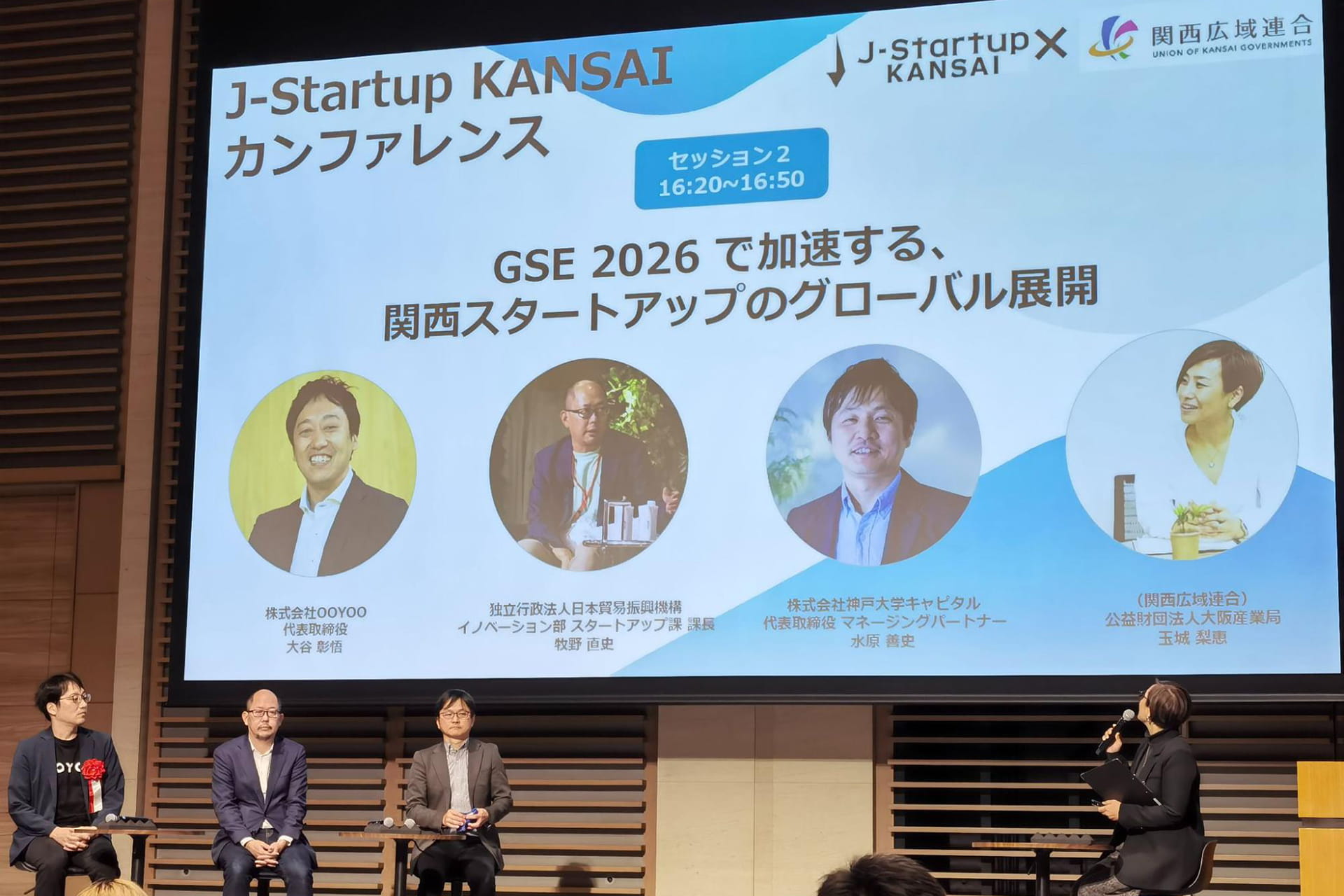 As a precursor, J-Startup Kansai featured a panel discussion on the region’s deep tech landscape and its international expansion. Speakers included Shogo Otani, CEO of OOYOO; Naofumi Makino, director of startup initiatives at the Japan External Trade Organization (JETRO); Yoshifumi Mizuhara, managing partner of Kobe University Capital; and Rie Tamashiro of the Union of Kansai Governments, who moderated the session.